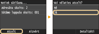 nospiešanas, displejā pieskarieties <Atcelt> vai darbības panelī nospiediet