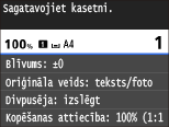 Ja iekārta saņem faksa dokumentu, vai ir iestatīta automātiska pārskatu drukāšana, saņemtie faksa dokumenti un pārskati tiks glabāti iekārtā, lai pēc izdrukāšanas tie nebūtu blāvi. Lai turpinātu drukāšanu, pat ja kasetnē atlikušais toneris ir gandrīz beidzies, iestatījumam <Turpināt drukāšanu, ja kasetnē ir maz tintes> izvēlieties vērtību <Iesl.>. Turpināt drukāšanu, ja kasetnē ir maz tintes
