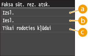 Izvēloties <Iesl.> vai <Tikai rodoties kļūdai>, atskaitē var iekļaut daļu no faksa dokumenta. Iestatiet <Iekļaut sūtīšanas attēlu> uz <Iesl.>.