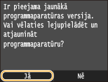 Ja tiek rādīts ziņojums <Šī ir visjaunākā programmaparatūras versija.>, nav jāatjaunina programmaparatūra.