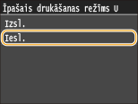 Ja vienumam norādāt iestatījumu <Iesl.>, drukas kvalitāte var būt zemāka atkarībā no papīra tipa vai darba vides (vēl izteiktāk, ja drukājat uz plāna papīra vai lietojat iekārtu darba vidē ar augstu mitruma līmeni).