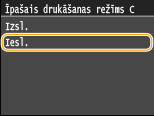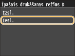 Ja šo problēmu nevar atrisināt, izvēloties šo iestatījumu, iestatījumam <Īpašais drukāšanas režīms D> norādiet vērtību<Iesl.>. Īpašais drukāšanas režīms D