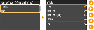 Izvēlieties lapas apraksta valodu, lai iekārta tiktu atpazīta kā ar šo valodu saderīgs printeris, ja tas ir pievienots datoram, izmantojot USB.