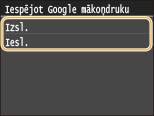 Iekārtu varat arī reģistrēt no mobilās ierīces vai pārlūkprogrammas Google Chrome*. Pirms reģistrēšana ir pabeigta, iekārtas displejā tiek parādīts tālāk redzamais apstiprinājuma ekrāns. Lai reģistrēšanu pabeigtu, nospiediet <Jā>.