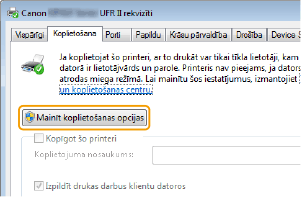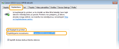 Lai veiktu nodaļas ID pārvaldību, izmantojot drukāšanas serveriInstalējot printera draiverus, ir jāpievieno pakalpojums "Canon Driver Information Assist Service" (Canon draiveru informācijas palīgpakalpojums). Papildinformāciju skatiet dokumentā "Dokuments MF Driver Installation Guide (MF draivera instalēšanas rokasgrāmata)".