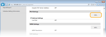 Noklikšķiniet uz [Edit], kas atrodas sadaļā [IPv6 Settings].