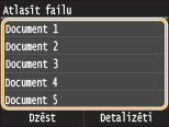 Ja atmiņā ir saglabāti divu vai vairāk lietotāju aizsargātie dokumenti, pirms ekrāna <Atlasīt failu> parādīšanas tiek parādīts ekrāns <Atlasīt lietotāju>. Atlasiet savu lietotājvārdu.