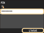 Ievadiet PIN, izmantojot ciparu taustiņus, un pēc tam pieskarieties <Lietot>.