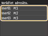 Lai reģistrētu skenēšanas iestatījumu kombinācijas un tās parādītu, kad nepieciešams: Bieži izmantotu skenēšanas iestatījumu reģistrēšana (e-pasts/I-Fax/koplietojama mape/FTP serveris)