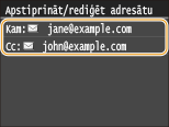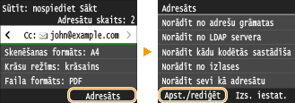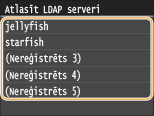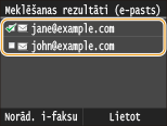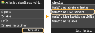 Ja jūsu birojā ir instalēts LDAP serveris, adresātu varat norādīt, izmantojot lietotāja informāciju serverī. Piekļūstiet LDAP serverim, izmantojot iekārtu, lai meklētu atbilstošu lietotāja informāciju un norādītu to kā adresātu.
