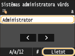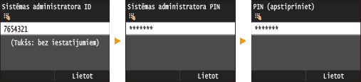 ![]() Modelī MF419x / MF418x sistēmas pārvaldnieka ID un PIN pēc noklusējuma ir "7654321". Drošības apsvērumu dēļ šos iestatījumus ir ieteicams nomainīt.