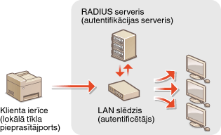 IEEE 802.1X ir standarts un mehānisms, kas paredzēts nesankcionētas piekļuves tīklam bloķēšanai, un tas kopīgi pārvalda lietotāju autentifikācijas informāciju. Ja ierīce mēģina izveidot savienojumu ar 802.1X tīklu, ierīcei jāveic lietotāja autentifikācija, lai pārliecinātos, vai savienojumu veic autorizēts lietotājs. Autentifikācijas informācija tiek nosūtīta uz RADIUS serveri, kur tā tiek pārbaudīta. Šis serveris atļauj vai aizliedz sakarus ar tīklu atkarībā no autentifikācijas rezultāta. Ja autentifikācija neizdodas, LAN slēdzis (jeb piekļuves punkts) bloķē piekļuvi no tīkla ārpuses. Iekārta var izveidot savienojumu ar 802.1X tīklu kā klienta ierīce.