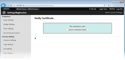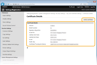 Pārbaudiet detalizētu informāciju par sertifikātu un noklikšķiniet uz [Verify Certificate].