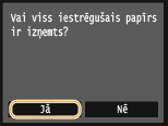 Izņemot iestrēgušo papīru, neizslēdziet iekārtu.Izslēdzot iekārtu, tiek izdzēsti drukājamie dati. Esiet īpaši uzmanīgs, saņemot faksa dokumentus.