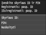 Bakstelėkite <Skyriaus ID> arba <Sistemos admin. ID>.