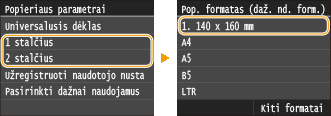 Daugiafunkcio dėklo popieriaus formato pasirinkimas