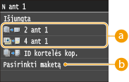 Naudojant <2 ant 1>/<4 ant 1> automatiškai sumažinamas kopijavimo mastelis (kopijavimo mastelis rodomas ekrane). Prieš paspausdami