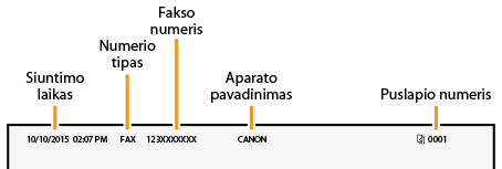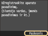Užregistruokite savo aparato fakso numerį ir įrenginio pavadinimą. Informacija spausdinama kiekvieno iš šio aparato siunčiamo puslapio viršuje.