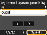 Naudodami skaičių mygtukus įveskite įrenginio pavadinimą (pvz., vartotojo vardą arba įmonės pavadinimą) ir bakstelėkite <Taikyti>.