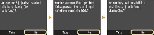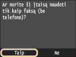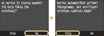 Bakstelėkite <Taip> arba <Ne>, kad pasirinktumėte priėmimo režimą.