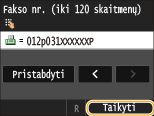 Jei reikia pauzę įterpti fakso numerio pabaigoje, bakstelėkite <Pristabdyti>.