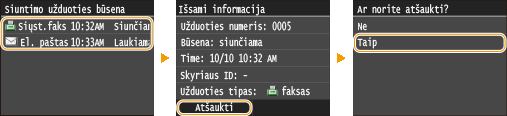 Bakstelėkite <Atšaukti> ekrane faksogramos perdavimo metu