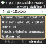 * Maksimalus skaičius adresatų, kuriuos galite nurodyti naudodami LDAP serverį arba skaičių mygtukus, yra 10. Jei skaičių mygtukus naudojate kartu su LDAP serveriu, galima nurodyti ne daugiau kaip 10 adresatų. Pvz., jei naudojant skaičių mygtukus nurodyti septyni adresatai, naudojant LDAP serverį galima nurodyti ne daugiau trijų adresatų.