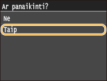 Leidžia spausdinti priėmimo ataskaitas kiekvieną kartą, kai dokumentai išsaugomi atmintyje. Norėdami spausdinti ataskaitas, bakstelėkite <Įjungta>. Taip pat būtina nustatyti <Priėmimo rezultatų ataskaita> kaip <Įjungta>.