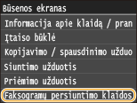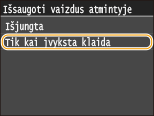 Pasirinkite <Įjungta> arba <Tik kai įvyksta klaida>