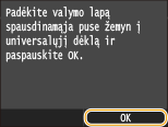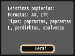 Patikrinkite, ar į aparatą įdėtas rodomo formato ir dydžio popierius, tada bakstelėkite <Gerai>.