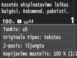 Jeigu aparatas priima faksogramą arba nustatytas automatinis ataskaitų siuntimas, priimtos faksogramos ir ataskaitos bus saugomos aparate, kad išspausdinus jie neišbluktų. Norint tęsti spausdinimą, net jei senka dažomųjų miltelių kasetės likutis, nustatykite <Tęsti spausdinimą, kai kasetėje liko labai mažai dažų> iki <Įjungta>. Tęsti spausdinimą, kai kasetėje liko labai mažai dažų