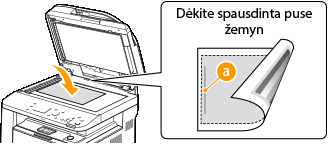 Padėkite išspausdintą koregavimo lapą ant ekspozicinio stiklo išspausdinta puse žemyn.