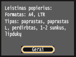 Patikrinkite, ar į aparatą įdėtas ekrane rodomo formato ir dydžio popierius, tada bakstelėkite <Gerai>.