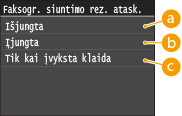 Pasirinkus <Įjungta> arba <Tik kai įvyksta klaida>, į ataskaitą galima įtraukti dalį faksogramos. Nustatykite <Įtraukti siuntimo vaizdą> ties <Įjungta>.