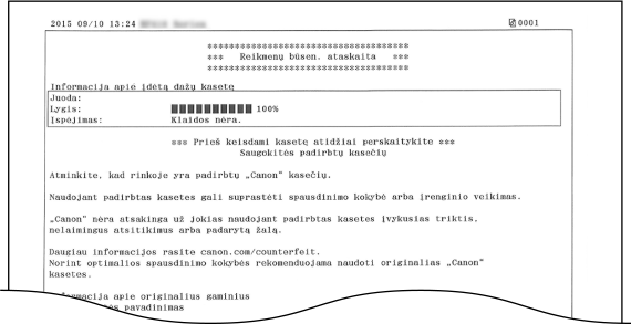Galite patikrinti aparate sumontuotų eksploatacinių medžiagų būklę.