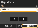 Įveskite slaptažodį naudodami skaičių mygtukus ir bakstelėkite <Taikyti>.