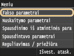 Visi fakso parametrai išvardyti su trumpais aprašais. Numatytieji parametrai pažymėti durklu (