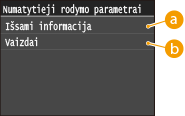 Žvaigždutės (*)Parametrai, pažymėti žvaigždute (*) galimi tik tada, jei prijungtas papildomas popieriaus tiektuvas (2 stalčius).