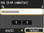 Įveskite tinklo raktą naudodami skaičių mygtukus ir bakstelėkite <Taikyti>.