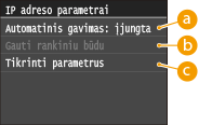 Patikrinkite, ar <Automatinis IP> nustatyta kaip <Įjungta>.