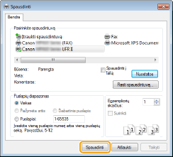 Bakstelėkite arba spustelėkite [Įrenginiai] [Spausdinti] šio aparato spausdintuvo tvarkyklei [Spausdinti].Jei spausdinate šiuo būdu, galimas tik ribotas spausdinimo parametrų kiekis.