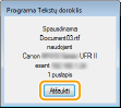 Jei rodomas pranešimas [Spausdintuvui reikia jūsų dėmesio. Eikite į darbalaukį, kad galėtumėte pasirūpinti spausdintuvu.], pereikite į darbalaukį ir vykdykite dialogo lange rodomas instrukcijas. Šis pranešimas rodomas tada, kai aparatas nustatytas rodyti vartotojo vardą spausdinant ar atliekant panašias funkcijas.
