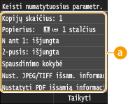 . Jei šiuos numatytuosius parametrus pakeisite pagal dažnai atliekamas operacijas, jums nebereikės tų pačių parametrų nurodyti kiekvieną kartą spausdinant.