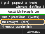 Adresų knygelės naudojimo instrukcijų žr. skyriuje Nurodymas iš adresų knygelės .