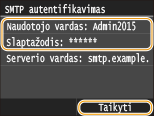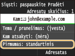Jei norite nurodyti el. laiško siuntėjo vardą:Registruoti aparato pavadinimą (el. paštas / I-faksas)