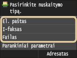 Prieš naudodami šią funkciją, adresų knygelėje turite užregistruoti adresatus. Įregistravimas adresų knygelėje