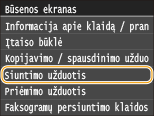 Kai <Rodyti užduočių žurnalą> nustatyta kaip <Išjungta>, išsiųstų dokumentų įrašų tikrinti negalite. Rodyti užduočių žurnalą