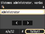 ![]() Modelyje MF419x / MF418x, pagal numatytąjį nustatymą sistemos administratoriaus ID ir PIN kodas yra „7654321“. Rekomenduojama pakeisti šį parametrą, kad būtų užtikrintas aukštesnis saugumo lygis.