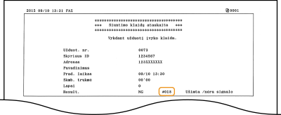 Priimti faksogramą aparatas ištrina duomenis pradedant nuo 1.000 puslapio ir spausdina pirmuosius 999 puslapius arba laiko juos atmintyje. Paprašykite siuntėjo pakartotinai išsiųsti dokumentą nuo 1.000 puslapio.