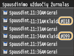 Jei klaida įvyksta dėl nesėkmingo spausdinimo arba jei negalite išsiųsti arba gauti faksogramos ar nuskaityto dokumento, atitinkamas trijų skaitmenų formato klaidos kodas parodomas ataskaitoje arba <Užduočių žurnalas> ekrane. Toliau rasite kiekvieno klaidos kodo priežastis ir sprendimus. Informacijos, kaip išspausdinti klaidos ataskaitą ir ataskaitoje esančią informaciją, žr.